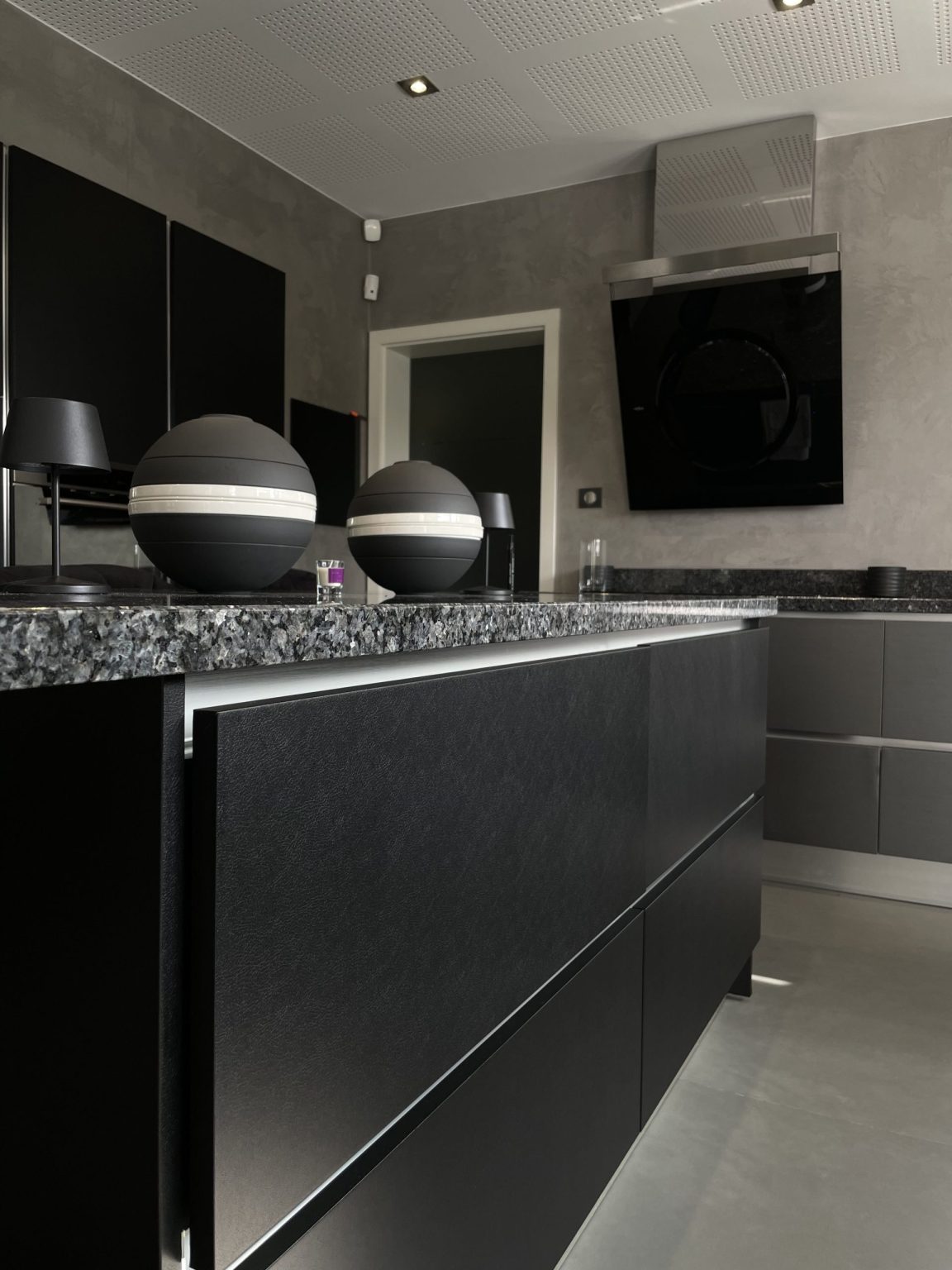 Rénovation d’une cuisine avec un adhésif effet cuir noir à Strasbourg